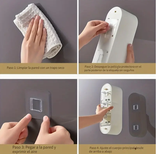 Presentamos nuestra última incorporación a la colección de suministros de cocina: la caja de condimentos. Este artículo doméstico versátil y conveniente es imprescindible para cualquier cocina. Fabricada con plástico de alta calidad, esta caja de condimentos para colgar en la pared está diseñada para mantener la sal, el glutamato monosódico y otros condimentos organizados y fácilmente accesibles. Una de las características destacadas de esta caja de condimentos es su instalación sin perforaciones. No hay necesidad de preocuparse por dañar las paredes o hacer agujeros adicionales. Simplemente fíjelo a cualquier superficie lisa usando el adhesivo incluido y listo. Este diseño innovador garantiza que sus condimentos estén al alcance y al mismo tiempo ahorra valioso espacio en el mostrador.